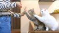 おやつが欲しくてハイタッチを繰り出す猫たち!